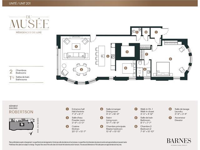 Projet du Musée - Finitions haut de gamme et architecture patrimoniale définissent ce condominium raffiné de deux chambres, comprenant une salle de bain et une salle d'eau, où élégance et art de vivre distingué se rencontrent. Située au deuxième étage, l'unité bénéficie d'un accès par ascenseur privé directement depuis le stationnement au garage, assurant confort et discrétion. Le caractère architectural favorise l'intimité ainsi qu'une lumière naturelle abondante. Accès à un gym privé, sécurité et allées chauffées avec système de déglaçage complètent cette propriété d'exception. TPS/TVQ doivent être ajoutées au prix demandé (38326624)