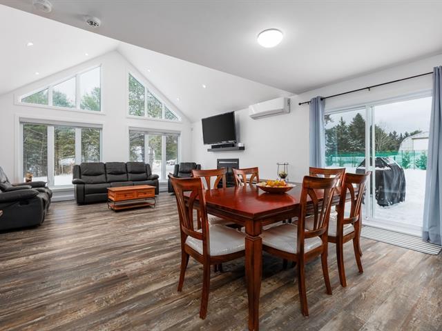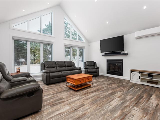 Magnifique construction récente offrant un espace de vie à aire ouverte réunissant salon, salle à manger et cuisine. Le salon, avec plafond cathédrale et foyer au bois, est baigné de lumière naturelle grâce à une grande fenestration. Cuisine moderne avec îlot central et comptoir en bambou. Plancher radiant assurant un confort exceptionnel. Aménagement sur un seul niveau, pratique et accessible pour les personnes à mobilité réduite. Garage double chauffé et isolé avec espace de rangement, cabanon, entrée pavée récente. Aucun voisin à l'arrière et à proximité de descentes municipales pour bateaux. Un cadre paisible pour profiter du plein air. (48039219)