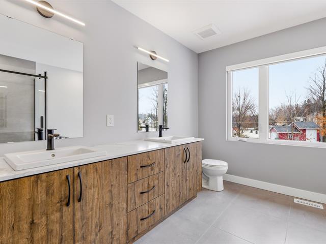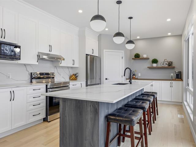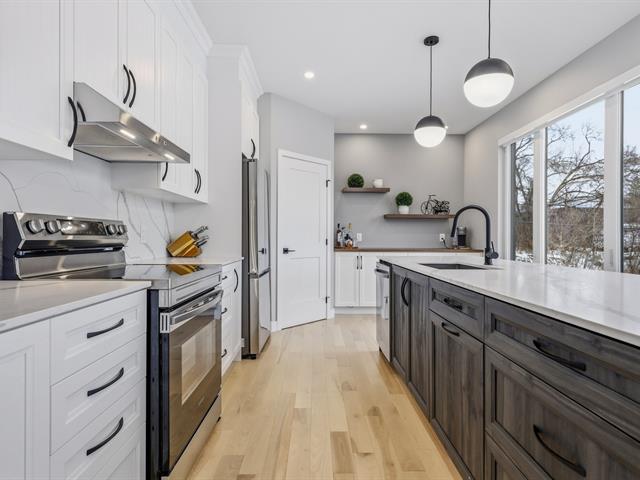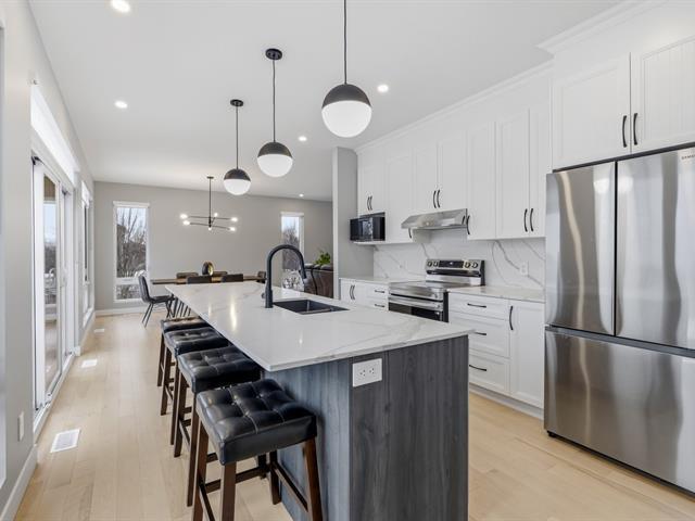 Élégante propriété moderne de 1 900 pi² nichée sur un terrain de près d'un acre, offrant un cadre de vie raffiné et lumineux. Elle propose 4 chambres à coucher et 3.5 salles de bain, avec de superbes planchers de bois franc et de céramique sur l'ensemble des espaces. Les plafonds élevés et l'impressionnante fenestration cathédrale créent une atmosphère grandiose. La cuisine haut de gamme séduit par son immense îlot, ses comptoirs de quartz et son garde-manger aménagé. Plusieurs chambres profitent d'une vue paisible sur la rivière.Le sous-sol entièrement aménagé offre une flexibilité remarquable,avec la possibilité d'y ajouter une 5e chambre. (47016058)