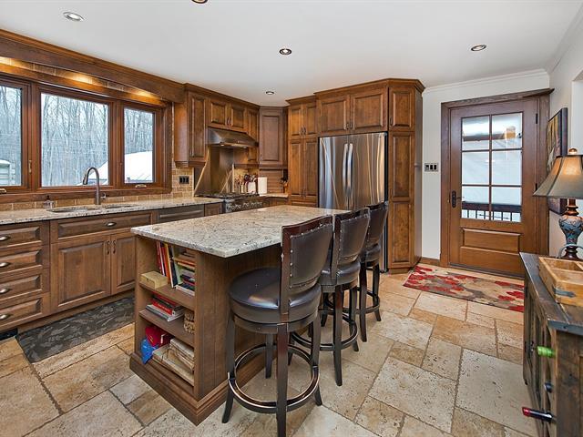 Très belle propriété tout en pierres située dans un secteur tranquille et très recherché à seulement 15 min. du centre-ville. Elle possède de grandes pièces aire ouverte avec une cuisine à faire rêver dont son immense îlot central + un comptoir lunch le tout en granit, une salle à manger donnant accès sur une grande terrasse couverte, foyer au salon, 3 chambres et 2 salles de bain plus un sous-sol avec entrée extérieur. Garage de 20,6x30,6 isolé avec plancher chauffant au glycol, remise et piscine au sel, chauffée ainsi qu'un gazebo complètent le tout sur un terrain de 15 800 pc sans voisin arrière. Propriété d'exception! À voir absolument! (45865920)