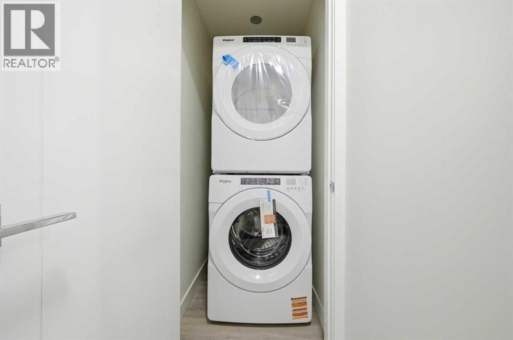 Réfrigérateur, Cuisinière électrique, Lave-vaisselle, Four à micro-ondes avec hotte intégrée, Couvre-fenêtre, Laveuse et sécheuse superposées