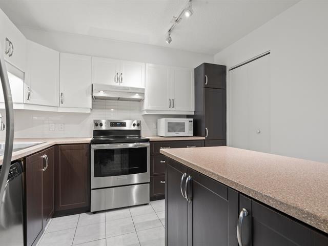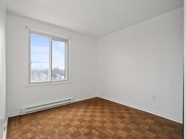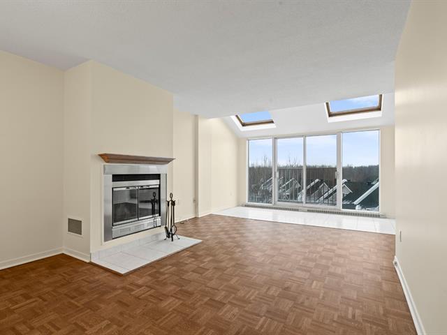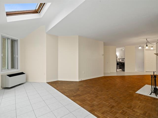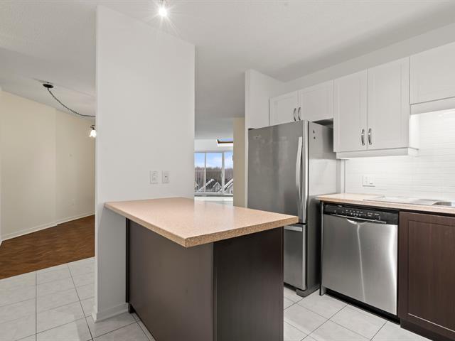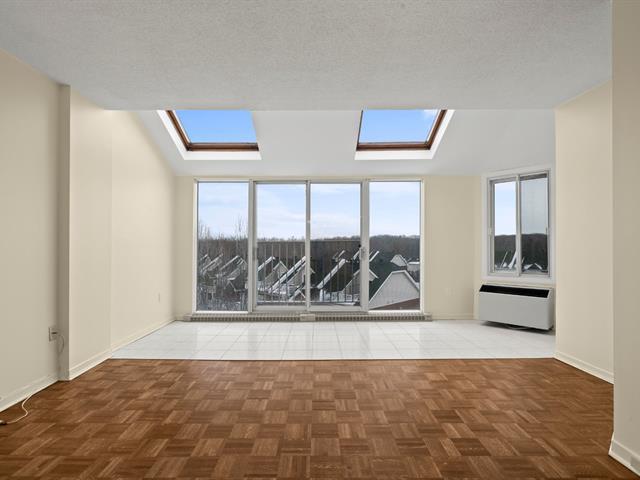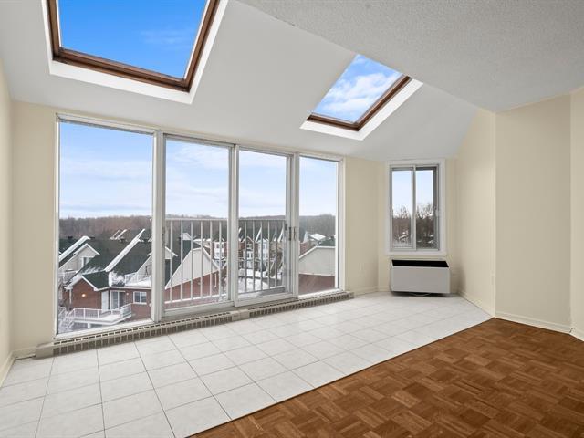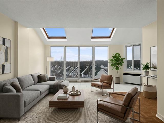 *Les tours du Parc* Située au dernier étage de l'immeuble, avec une vue panoramique et une abondance de luminosité provenant de sa fenestration surdimensionnée et de ses puits de lumière, très belle unité de 2 chambres à coucher, cuisine et salle de bain rénovées, climatiseur mural, 1 espace de stationnement privé au garage, locker à proximité, immeuble sécuritaire avec caméra de surveillance et interphone, très tranquille avec insonorisation ++, ascenseur, chute à déchet, salle commune, stationnements visiteur, entouré de verdure et à quelques pas du parc Michel-Chartrand ainsi que de tous les services via de nombreux sentiers pédestres! (53323175)