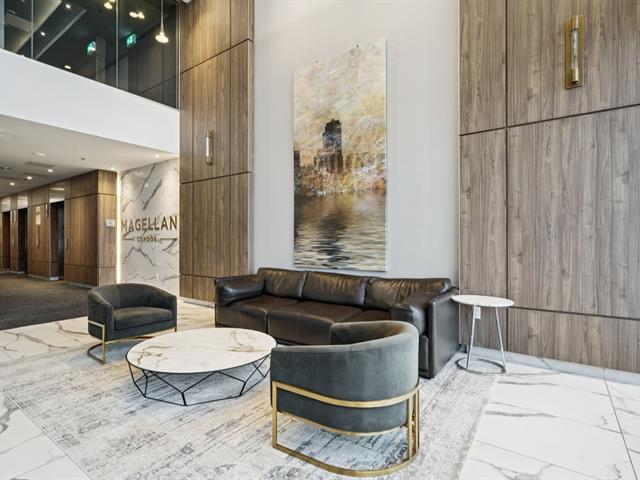 Superbe condo 1 chambre à aire ouverte situé au 5e étage d'un immeuble de prestige construit en 2021 à Brossard. Offrant plafonds hauts et design contemporain. Piscine intérieure chauffée, deux piscines extérieures, spa, sauna, gym entièrement équipé, salon pour invités et salle de conférence. Construction certifiée LEED pour une efficacité énergétique supérieure. Accès direct au REM sans sortir de l'immeuble. Emplacement exceptionnel et très recherché. Planifiez votre visite dès aujourd'hui! Voir ADDENDA. (54459928)