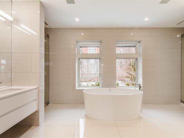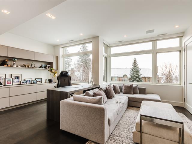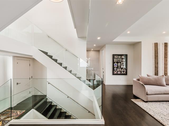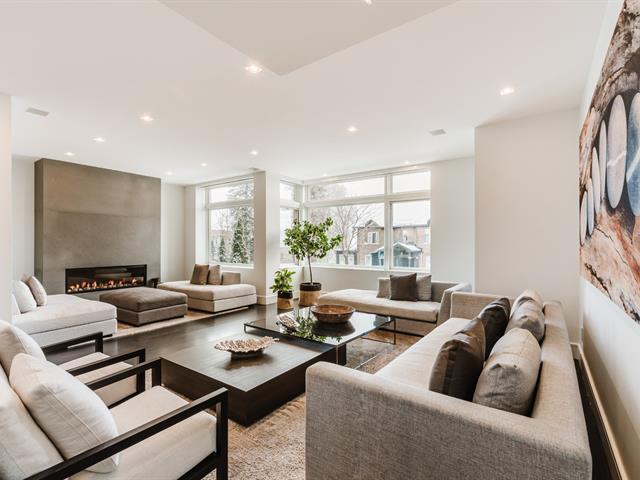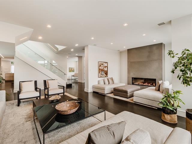 Résidence contemporaine remarquable offrant une architecture raffinée, une luminosité exceptionnelle et une parfaite fluidité entre les espaces intérieurs et extérieurs. Les aires de vie à aire ouverte sont mises en valeur par une fenestration abondante et des finitions haut de gamme. La cuisine du chef s'ouvre sur les espaces de réception, idéale pour recevoir. La suite principale propose un dressing aménagé sur mesure et une salle de bains luxueuse. Le niveau inférieur comprend une salle familiale et une salle d'entraînement. Terrasses privées, cour aménagée, ascenseur et garage intégré complètent cette propriété clé en main. (43001093)