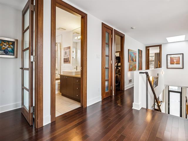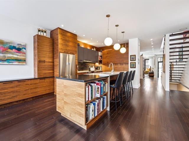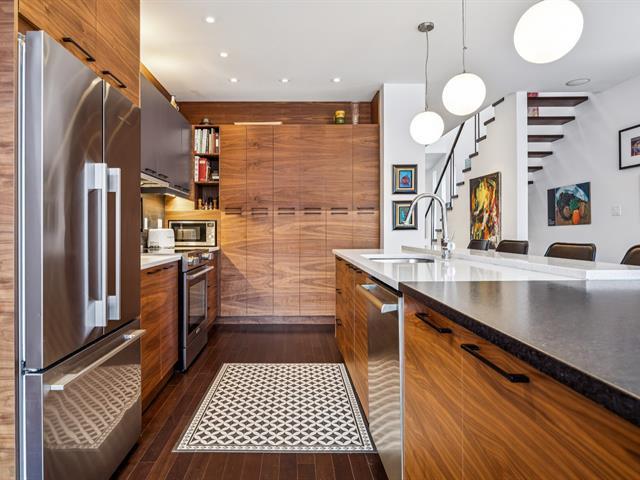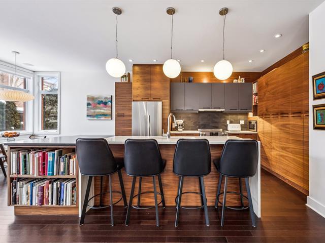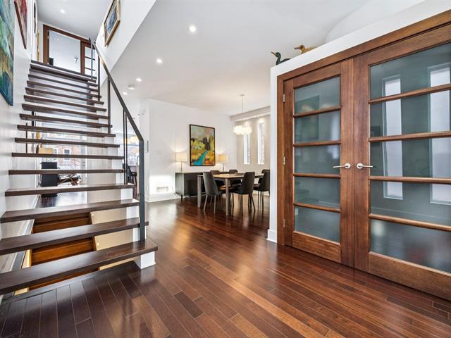 Située au coeur du village Monkland, maison unifamiliale d'architecte au style contemporain. Le rez-de-chaussée offre de beaux espaces de vie baignés de lumière grâce aux grandes portes-fenêtres donnant sur des balcons & au puits de lumière de l'escalier. L'étage comprend 4 chambres, dont une suite principale avec walk-in, salle de bains & balcon. Le sous-sol propose une salle familiale, une 5e chambre et une salle de bains. Cour arrière intime, garage et allée pour le stationnement. Profitez de la proximité d'écoles réputées, de parcs verdoyants ainsi que des commerces, cafés et restaurants du quartier. Accès facile aux transports en commun. (41637330)