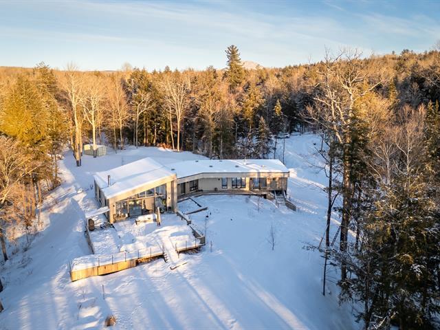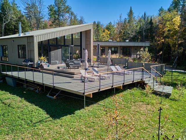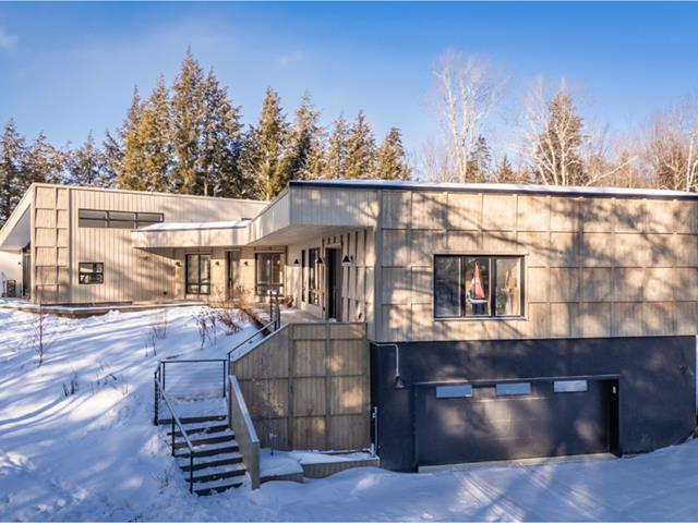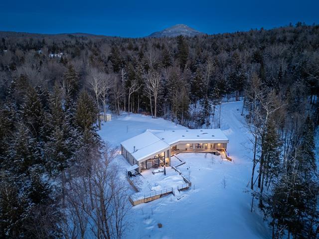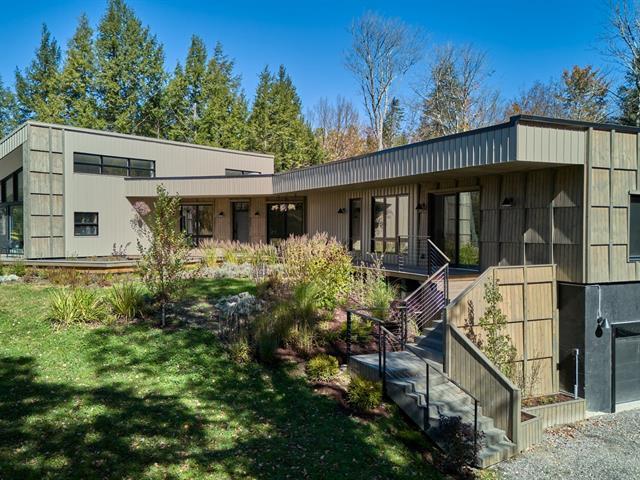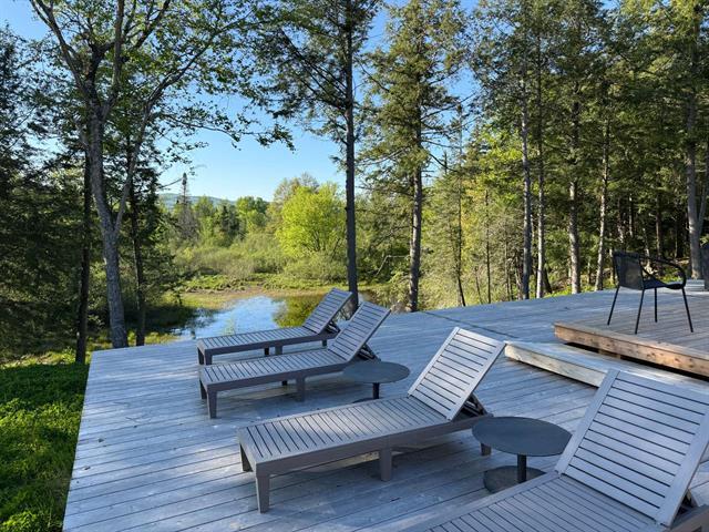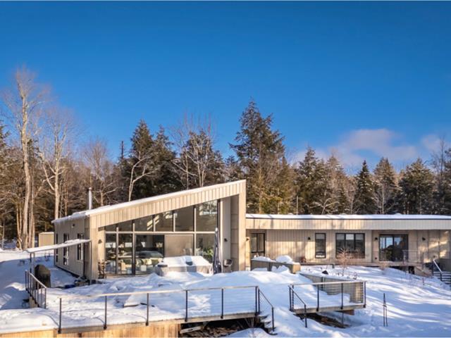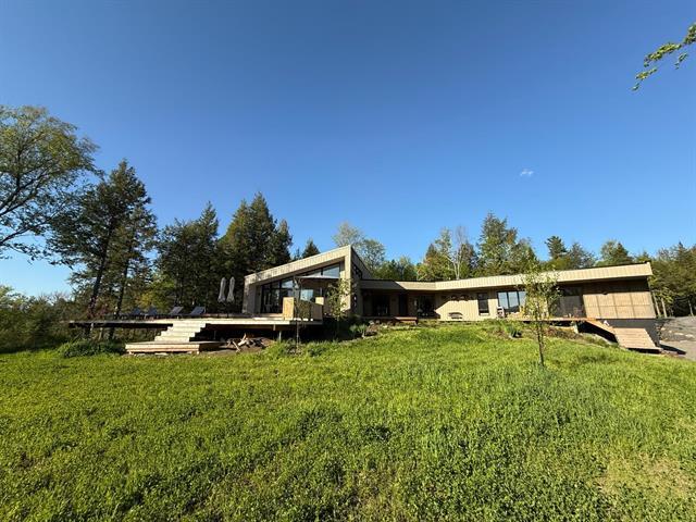 Soigneusement conçue et harmonieusement intégrée à son environnement naturel, cette propriété distinctive offre un équilibre rare entre architecture, paysage et art de vivre. Implantée en retrait le long d'un chemin privé, la maison se dévoile progressivement, ouvrant sur des vues sur les montagnes, l'étang et la rivière Missisquoi. Sa façade en cèdre, inspirée des granges japonaises, marie avec élégance matériaux naturels et industriels. À l'extérieur, une vaste terrasse avec spa, des prairies aménagées et un quai flottant offrent un accès direct à la rivière et des activités en toute saison. (45063224)