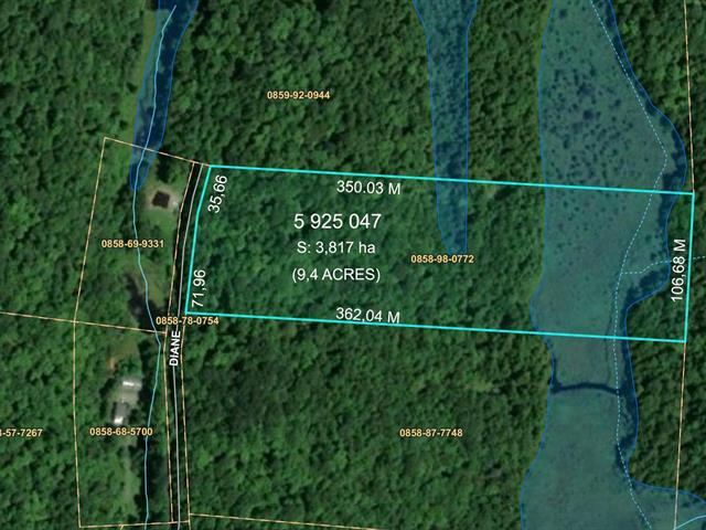 TERRAIN 9,4 ACRES - Terrain boisé sur une rue privée avec hydro. Zonage de villégiature V-04 permettant plusieurs projets (Fermette, Intergénération, Gîte touristique, etc.) Secteur privé situé à 3 minutes de l'autoroute 50. (52152509)