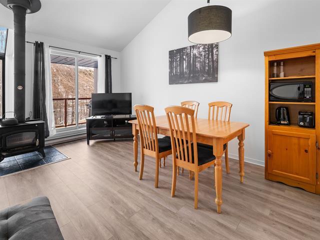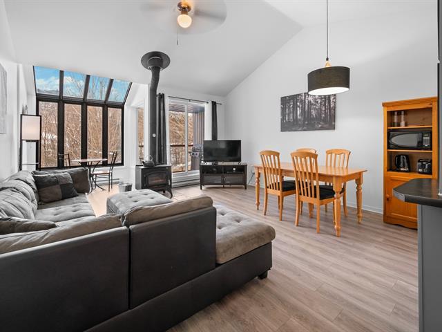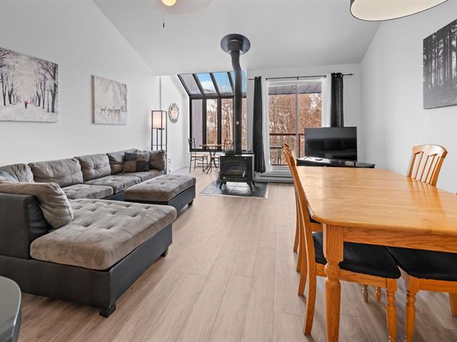 Superbe Condo de style maison de ville directement face aux pentes de ski Stoneham. 2 cc et une salle de bain. Salle à manger, cuisine et salon à air ouvert avec toit cathédrale et poêle à bois. Balcon bien orienté pour un soleil maximal avec vue panoramique sur les montagnes. Plusieurs travaux ont été réalisés par la copropriété dans les dernières années. À moins de 5 minutes à pieds des pentes de ski, à moins de la ville de Québec et à quelques minutes du club de golf, piste de vélo empire 47, Parc du Mont-Wright, Des Marais du Nord et De la Vallée de la J-Cartier. Location court terme permise. Quoi demander de plus? (50664516)