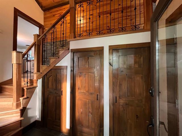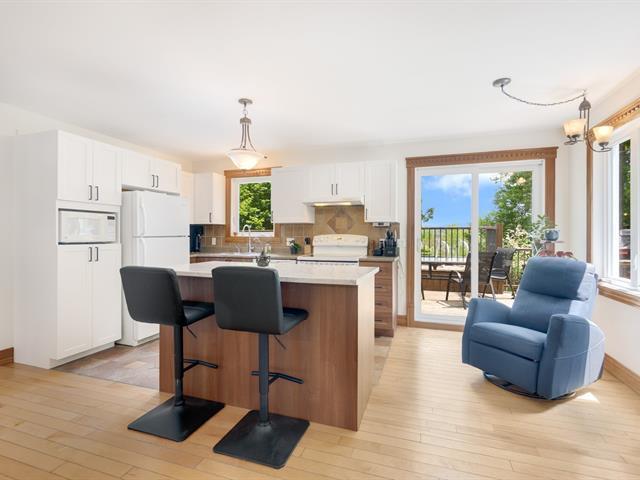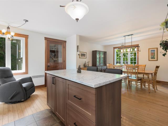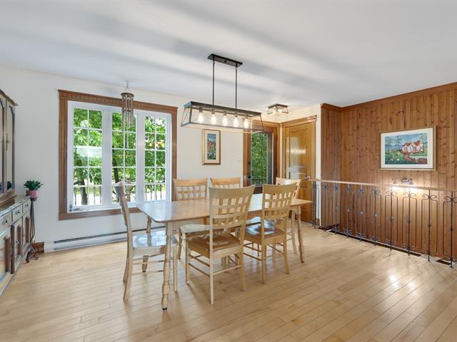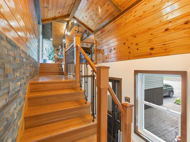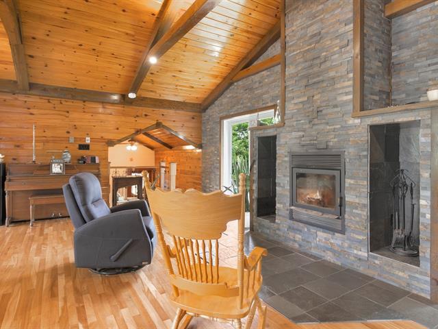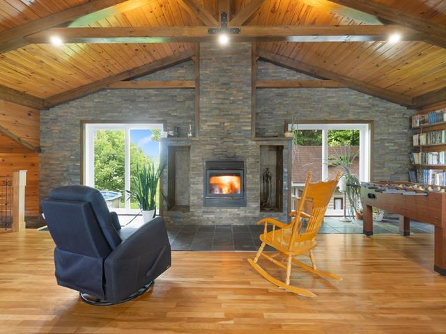 Cette superbe propriété située au TROIS-LACS dans un secteur paisible sur un terrain boisé intime, offre un cadre de vie chaleureux et fonctionnel. Le rez-de-chaussée comprend une belle cuisine rénovée avec îlot, une salle à manger lumineuse et une magnifique salon avec foyer au bois, plafond cathédral, belles boiseries. Une chambre, une salle de bains complète, une salle de lavage s'y ajoutent. Le sous-sol propose trois chambres, un salon avec poêle au granule, sortie extérieure et une deuxième salle de bains. Garage double 28 x 26pi. Vaste terrain aménagé, piscine, patio, galerie, remise. Un coup de coeur assuré! (46409925)