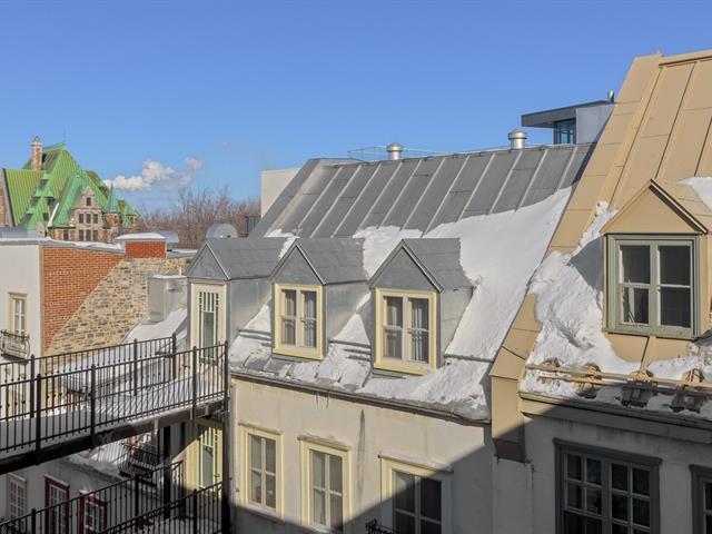 Unité rare au Vieux-Port de Québec -- Charme et quiétude au coeur de l'action Située au dernier étage de l'îlot Saint-Nicolas, cette unité transversale fraîchement repeinte vous offre lumière, tranquillité et caractère. À deux pas de la Gare du Palais, de la marina et des rues Saint-Joseph et Saint-Jean, vous êtes entouré de restos, cafés et galeries dans un décor au charme européen. Pas de balcon, mais une passerelle ensoleillée parfaite pour vos pauses café. Une cour intérieure paisible vous accueille comme un jardin secret. Grand rangement au sous-sol, stationnement en option juste en face. Ce condo est un vrai coup de coeur. Libre . (57814281)