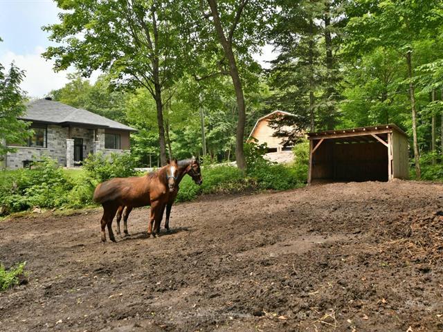 Située dans une rue sans issue, cette magnifique propriété plain-pied vous offre tranquillité et intimité sur un terrain boisé de plus de 227 000 pi², BORDÉ par le LAC Colonel. Orientation sud idéale, sans voisin arrière. Zonage FERMETTE avec enclos et abri pour chevaux. Aire de vie lumineuse à aire ouverte, 4 chambres + bureau, 2 salles de bain. Sous-sol partiellement rez-de-jardin avec entrée indépendante porte-patio & poêle au bois. Garage double détaché(26x22),isolé et chauffé, avec 2e étage pour rangement et/ou foin. Cour paysagée avec piscine creusée chauffée. À proximité des sentiers équestres Bonniebrook. Un véritable coin de paradis! (38776818)