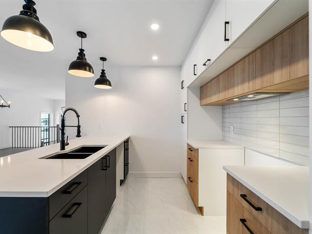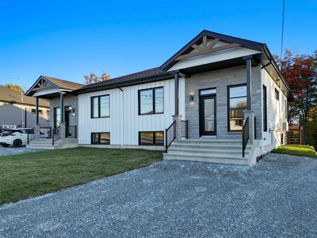 Nouveau modèle extérieur, possibilité de bâtir un garage. Prix de vente 495 000$ taxes incluses. Quartier recherché! Construction de qualité avec revêtement bois/pierre/fibro ciment, 1 150 pi ca habitable. Escaliers et planchers de bois franc, armoires mélamines jusqu'au plafond, terrain tourbé, maximum 3 750 pi. ca, insonorisation en béton, laine de roche, fenestration de couleur, garantie G.C.R. maison neuve 5 ans, porte patio 8 pi large (beaucoup de luminosité), plafond de 8 pi. Division et rough de plomberie faits au sous-sol. Une maison modèle est disponible pour visiter! TPS/TVQ doivent être ajoutées au prix demandé (48294801)