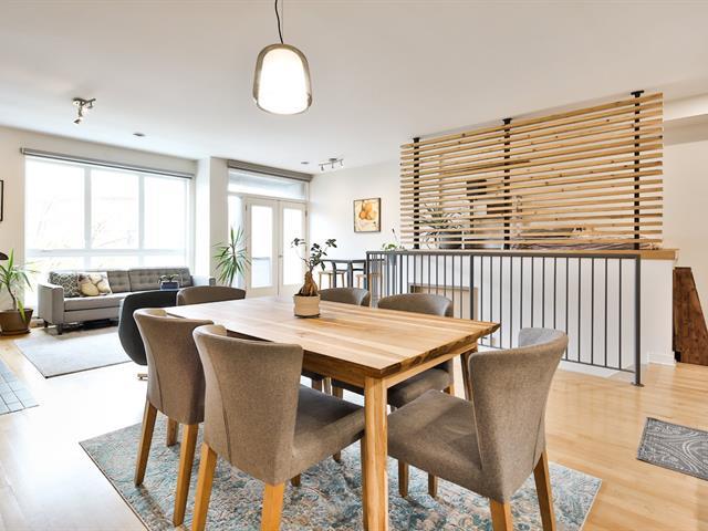 Penthouse exceptionnel sur deux niveaux totalisant 1 568 pi², baigné de lumière grâce à une généreuse fenestration et offrant une vue à 360° sur Montréal. Le premier étage propose un vaste espace de vie à aire ouverte comprenant un salon avec foyer, une salle à manger et une cuisine, ainsi que deux chambres confortables et une salle de bain. À l'étage, la grande chambre principale dispose de deux balcons, un de chaque côté. Une terrasse supplémentaire au 3 étage, un stationnement et un espace de rangement complètent le tout. Situé au coeur du Village à Montréal, près de tous les services. VOIR ADDENDA. (57045068)
