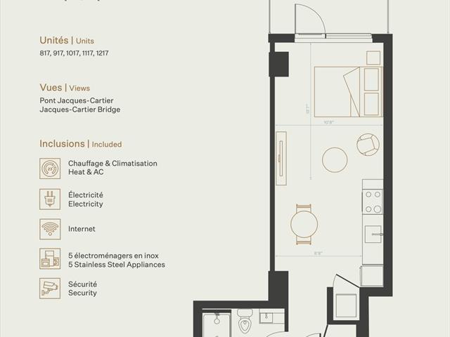 Luxueux studio lumineux avec balcon, offrant une vue dégagée et un accès à une cour intérieure piétonne de 36 000 pi². Situé à Place Gare Viger, au coeur du Vieux-Montréal, à quelques pas du CHUM et de l'UQAM. Profitez d'installations haut de gamme : piscine extérieure avec espace BBQ, espaces de travail, gym, lounge des résidents, sécurité 24/7, entrée sans clé et application mobile dédiée. Stationnement intérieur, bornes de recharge et rangement offerts en option. Services de type hôtelier disponibles (frais supplémentaires). Profitez d'une promotion exclusive, contactez-moi pour plus d'informations. (47370436)