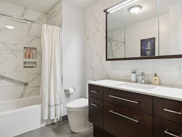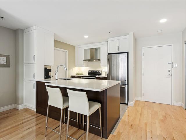 Condo ayant 2 chambres à coucher + garage de 947 PC placé en facade de l'immeuble. Extrêmement bien localisée à distance de marche du REM et de tous les services. Unité complètement rénovée entre 2017-2021 avec un grand souci du détail et des matériaux de qualité. Unité parfaitement divisée avec un espace de vie à aire ouverte, une cuisine de rêve, une salle de bain ainsi qu'une une salle de lavage qui a été complètement été repensée. Immeuble très sécuritaire avec des caméras à l'entrée, des planchers en béton pour une insonorisation optimale, un ascenseur et une salle d'exercice. *Possibilité d'occupation immédiate* (46707110)