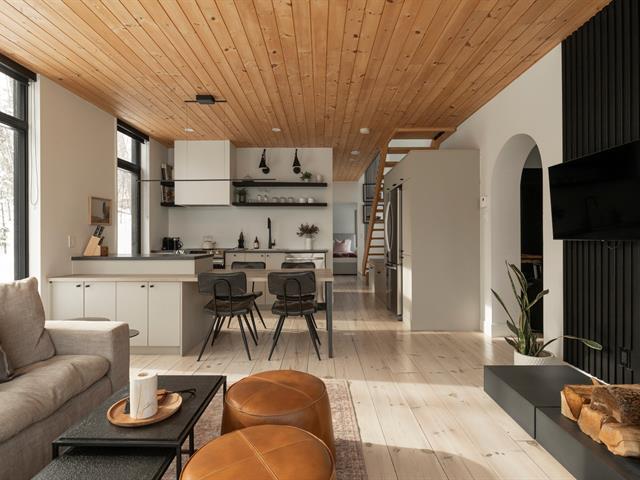LOCATION COURT TERME PERMISE. Superbe chalet moderne construit en 2022, perché en montagne et offrant une vue panoramique, situé à La Conception dans le projet prisé Chick Shack. Il propose 2 chambres + mezzanine (5 couchages), 1 salle de bain, un poêle au bois STÛV et un spa encastré. Aire ouverte lumineuse, finitions haut de gamme et mobilier inclus (LD Shoppe). Deux terrasses, dont une sur le toit avec vue sur le Mont-Tremblant. Propriété certifiée CITQ, prête pour la location à court terme. Une occasion clé en main idéale pour investisseurs, à voir rapidement! Voir la propriété sur Instagram : @drom_cabin TPS/TVQ doivent être ajoutées au prix demandé (39500488)