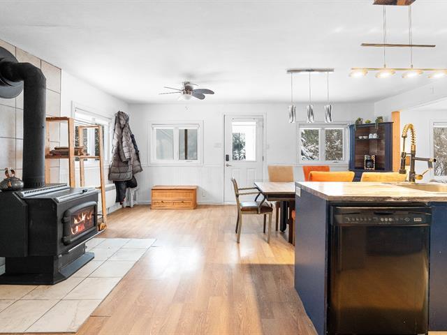 Charmant plain-pied situé dans un environnement paisible, offrant 2 chambres et 1 salle de bain. L'aire de vie à concept ouvert comprend une cuisine conviviale, une salle à manger accueillante et un salon chaleureux. Le foyer au bois, positionné à proximité de la salle à manger, s'intègre harmonieusement à l'espace ouvert et crée une ambiance réconfortante. Les pièces sont lumineuses et bien aménagées. Implantée sur un grand terrain boisé, la propriété propose intimité, tranquillité et un beau potentiel d'aménagement selon vos besoins. Parfait pour les amateurs de nature et de plein air. (50630987)