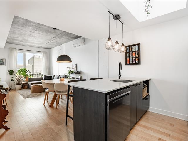 CONDO D'EXCEPTION SUR DEUX ÉTAGES AVEC GARAGE. Construction récente. Luminosité remarquable. Espaces de vie à aire ouverte. Cuisine gourmet avec îlot central. 2 chambres à coucher dont une sur la mezzanine. Salle de bain au style raffiné. Plafonds de béton - excellente insonorisation. Plancher impeccable. Terrasse privée avec vue sur le Mont Royal. Rangement. Garage. À distance de marche du métro Rosemont, des nombreux parcs et des commerces locaux. Emplacement idéal pour profiter des meilleures adresses du Petit Laurier et de Rosemont! Faites vite! (49718093)