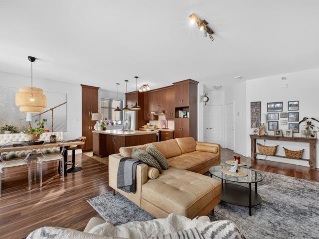 Superbe condo moderne à aire ouverte situé sur une rue paisible et peu passante. Aire de vie lumineuse avec grande fenestration et foyer au gaz créant une ambiance chaleureuse. Cuisine élégante et fonctionnelle avec abondant rangement, armoires jusqu'au plafond et grand îlot central idéal pour recevoir famille et amis. Deux chambres de belles dimensions, salle de bain avec douche indépendante, entrée privée et deux stationnements. Grand balcon intime sans vis-à-vis. Emplacement de choix près des services, commerces, écoles et de la gare de Candiac. À voir absolument ! (48459218)