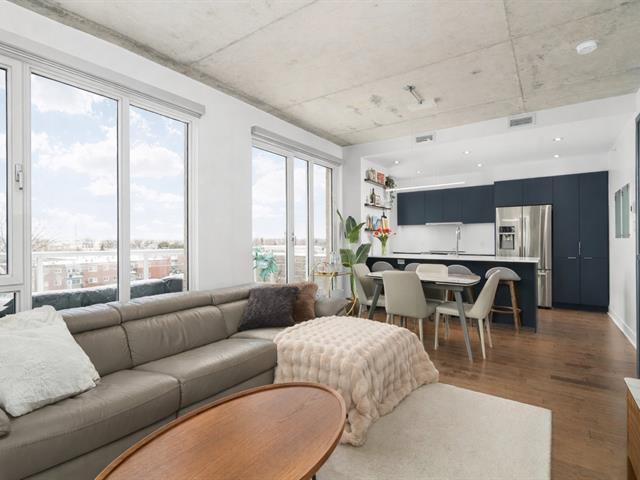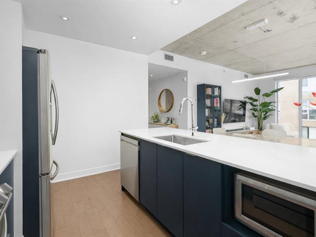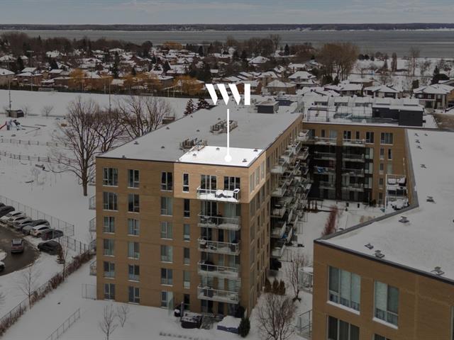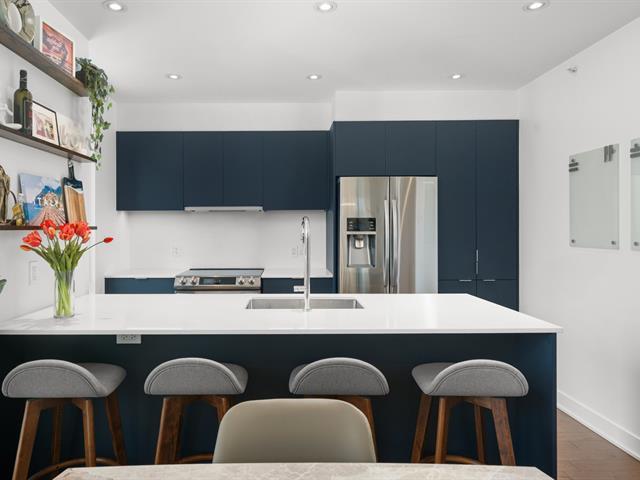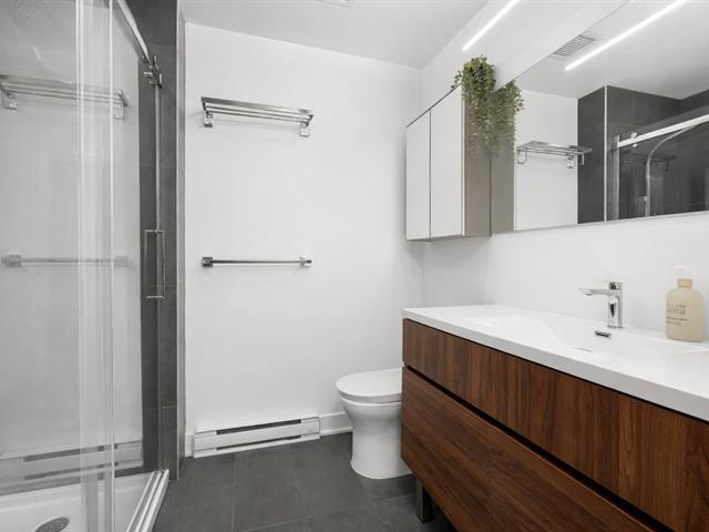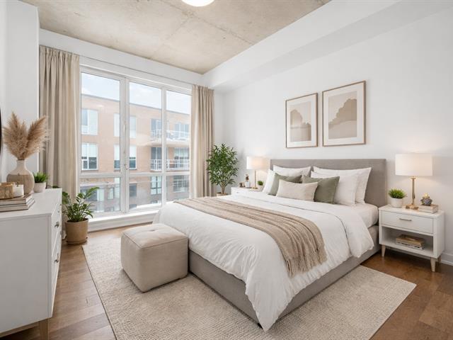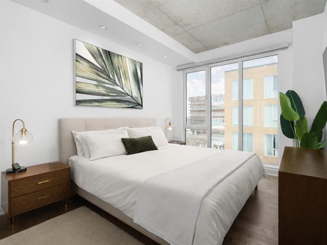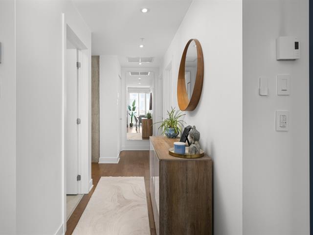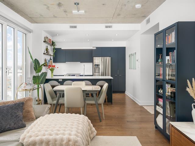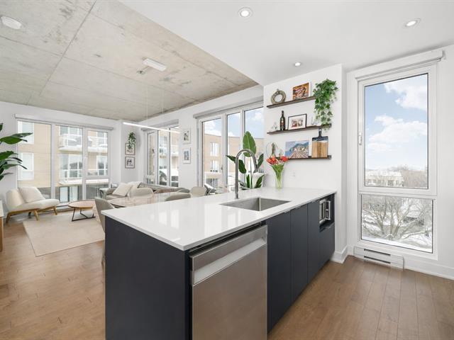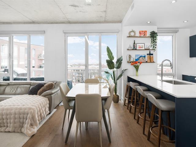Condo de luxe au dernier étage, unité de coin, 2 chambres et 2 salles de bains au prestigieux Le Quatrième à Dorval Sud-Est. Très lumineux avec plafonds de 9 pieds, chauffage et climatisation centraux, cuisine moderne haut de gamme, suite principale avec walk-in et salle de bains attenante. Grande terrasse privée, 5 électroménagers inclus, garage intérieur, stationnement extérieur et rangement. Piscine chauffée à l'eau salée, chalet urbain, terrasse BBQ sur le toit et gym complet. Emplacement recherché près de l'Académie Sainte-Anne et du lac Saint-Louis. (52876524)