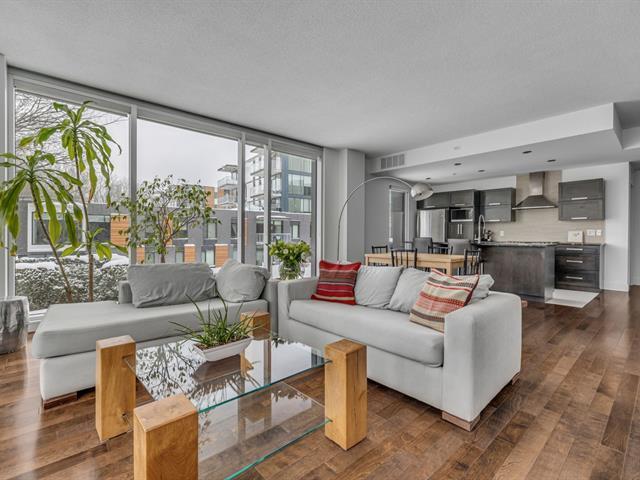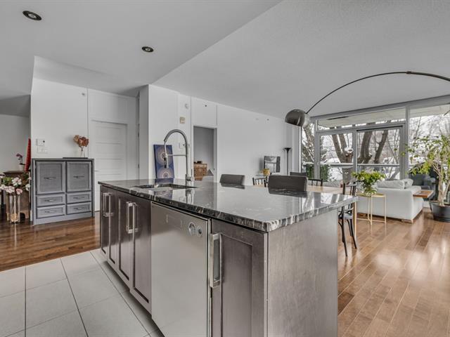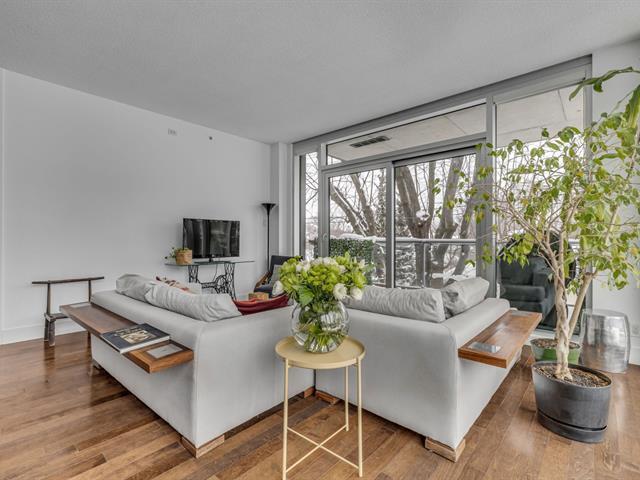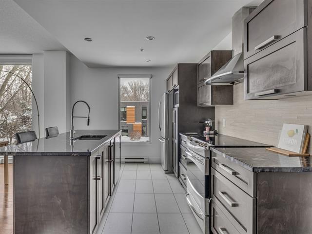 Allées Bellevue- Exclusivité et tranquillité au coeur d'un quartier recherché Rare unité de coin de 1086 pi² de 2 chambres, située au 2e étage d'un immeuble contemporain dans un quartier mature. Le luxe est dans les détails: comptoir de granite et armoires de bois dans la cuisine. Douche indépendante thérapeutique comptoir de quartz et double vasque en verre Kohler dans la salle de bain. Plafonds hauts et fenestration généreuse. Luminosité exceptionnelle sur les aires de vie ouvertes. Climatisation centrale. 1 stationnement + 1 espace de rangement. À proximité immédiate de tous les services. Laissez-vous séduire. (44359052)