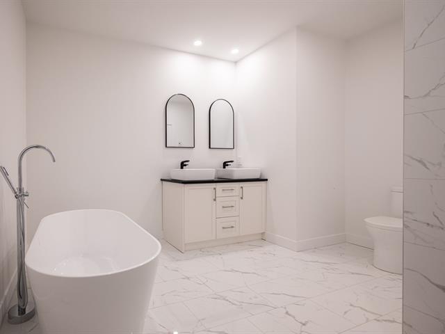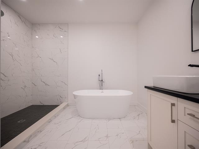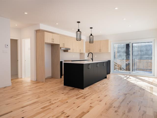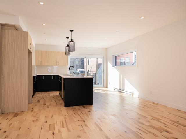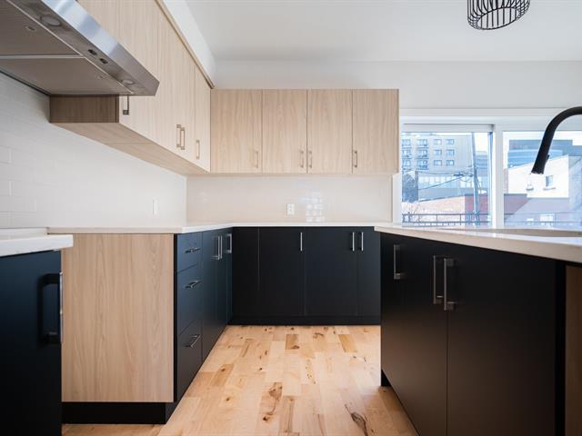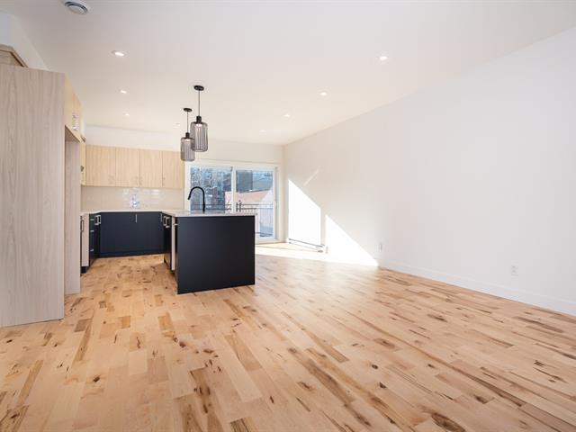 Construction neuve au 2e étage. Superbe unité 2 chambres + espace bureau offrant une aire de vie ouverte baignée de lumière. Cuisine moderne avec immense îlot en quartz, armoires deux tons et finitions haut de gamme. Planchers de bois, fenestration abondante et terrasse privée d'environ 9' x 6'. Salle de bains avec bain autoportant, douche vitrée et vanité double. Emplacement stratégique à proximité du métro, des parcs et des commerces. TPS/TVQ doivent être ajoutées au prix demandé (40479450)