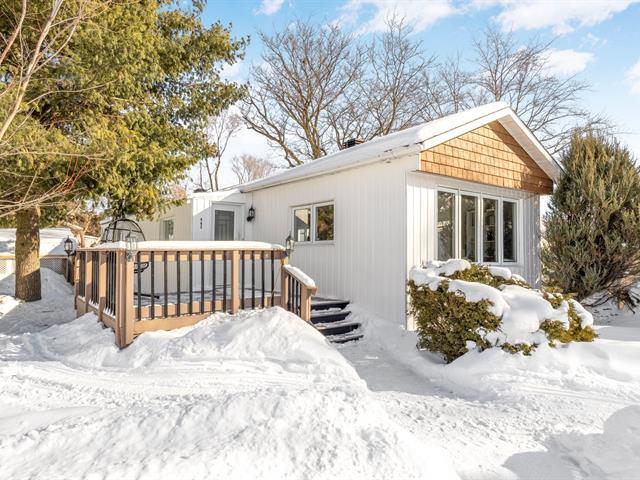 Superbe maison modulaire modernisée située sur un coin de rue dans le Domaine de maisons modulaires de Deux-Montagnes. Elle offre 2 chambres à coucher, une salle de bain rénovée et une aire de vie lumineuse et conviviale. En 2023, la cuisine, la salle de bain et les planchers ont été entièrement rénovés. En 2025, l'isolation complète des murs extérieurs ainsi que le revêtement extérieur ont été remplacés, améliorant le confort et l'efficacité énergétique. Air climatisé mural. Située sur un terrain loué, à proximité des commerces, services, piste cyclable et du REM. Propriété clé en main. (54738261)