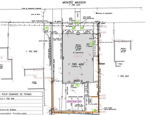 Terrain de 6 912 pi² vendu avec projet approuvé pour un 6 logements isolé (6 x 4 ½ spacieux de 1 050 pi²). Dossier clé en main incluant permis de construction et démolition, plans complets (architecture/structure) et rapports environnementaux. Situé au 4100 Mnt Masson. Évitez les délais administratifs et débutez votre investissement immédiatement. TPS/TVQ doivent être ajoutées au prix demandé (55332911)