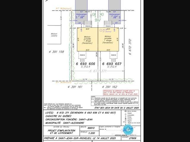 Magnifique construction neuve prévue pour vous accueillir en juillet 2026 ! Érigée sur un terrain actuellement vacant, cette propriété de type jumelé plain-pied vous offrira 2 chambres à coucher, 1 salle de bain complète ainsi que de nombreux espaces de rangement pensés pour un confort optimal. Les acheteurs devront compléter un contrat préliminaire avec le promoteur dans le cadre de la Garantie GCR 5 ans. Les frais de notaire sont inclus et l'acte devra être signé chez le notaire du promoteur. Ne manquez pas votre chance de venir vivre sur la rue du Bonheur ! TPS/TVQ doivent être ajoutées au prix demandé (48924296)