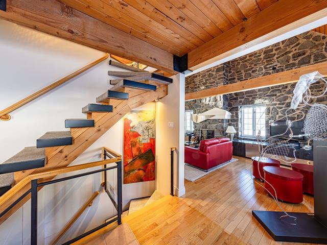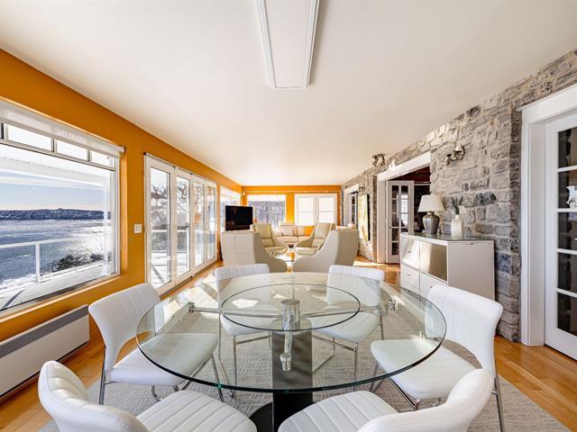Située sur la rive sud de l'Île d'Orléans, au bord du fleuve, cette propriété d'exception marie prestige et authenticité. La vue sur le fleuve est exceptionnelle, offrant un spectacle qui se transforme au gré des jours et des saisons. La propriété comprend une résidence au caractère unique ainsi qu'un atelier d'artiste indépendant, le tout intégré sur un vaste terrain de + 57000 pc. Murs extérieurs et intérieurs en pierres de calcaire, plafond cathédrale, poutres apparentes, foyer de 26 pieds de hauteur, solarium panoramique, tout est pensé pour créer un lieu de vie destiné à une clientèle en quête d'exclusivité et de distinction. (44765071)