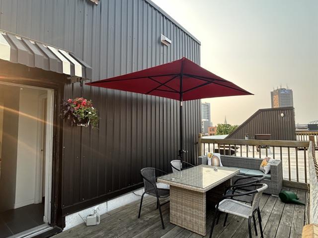 LA PAIX ! Situé seul au 5e étage en saillie de l'immeuble, ce penthouse offre une vue spectaculaire à 360° sur la ville. Avec son ascenseur et un espace de rangement inclus, ce logement est parfait. L'appartement dispose d'une terrasse privée de 200 pi2. Le propriétaire accepte les animaux et tous les électroménagers sont inclus. Il y a une thermopompe pour économiser sur l'énergie et quelques meubles déjà inclus ! (41725611)