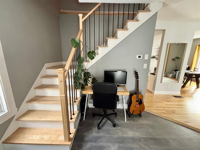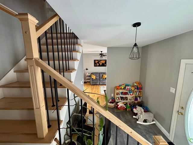 Superbe propriété, parfaite comme première maison. Elle possède 3 chambres à l'étage et une salle de bain spacieuse. Une aire ouverte au rez-de-chaussée vous offrant tout l'espace et le rangement dont vous avez besoin. Plusieurs rénovations effectuées au cours des dernières années comme la fenestration, la toiture, la cuisine, la salle de bains à l'étage et la salle d'eau, installation d'une fournaise au bois au sous-sol pour plus de confort et d'économies et plus encore. Un décor moderne, une cour intime clôturée, un garage détaché et pleins de rangement au sous-sol. Tout ce dont vous avez besoin s'y trouve. Demandez votre visite! (52454877)