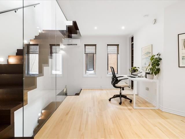 Maison de ville sur allée privée à Outremont. Aire de vie ouverte au rez-de-chaussée, cuisine rénovée avec comptoirs de quartz et coin repas, foyer au gaz, salle d'eau. Trois chambres, dont une mezzanine polyvalente (chambre, bureau ou salle familiale). Salle de bains rénovée avec bain et douche séparés. Terrasse privée sur le toit et jardin privé à l'avant. Deux thermopompes murales, très grand rangement, garage intégré avec accès intérieur. À proximité de Stanislas, du campus MIL de l'université de Montréal et de la station Canora du REM. (57318120)