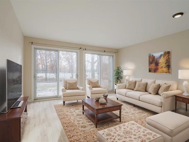 LUMINOSITÉ! TRANQUILLITÉ! SÉCURITÉ! Voici les 3 principaux qualificatifs pour ce condo en rez-de-jardin (aucune marche à descendre ou monter!) de 3 ½ pièces dans un domaine privé paisible. Le vestibule fermé par une porte française est chauffé. Les 2 portes-patio du salon donnent sur une terrasse intime, directement sur le golf Atlantide, AUCUN VOISIN derrière. La cuisine ergonomique ouvre partiellement sur le coin repas et le salon. Un petit coin de paradis qui saura vous plaire en toutes saison! PS: BIENVENUE AUX ANIMAUX! (44919213)