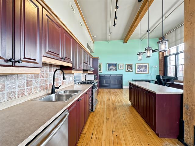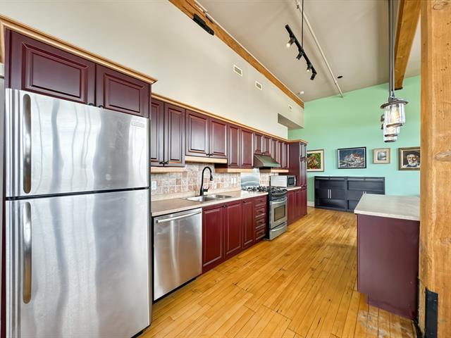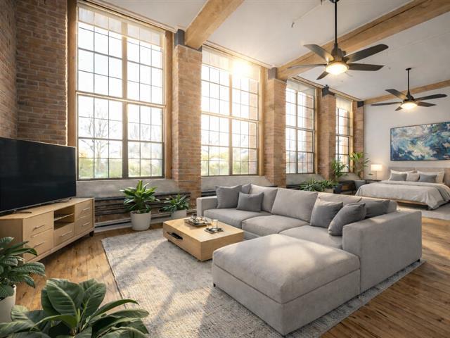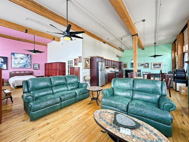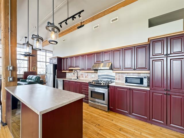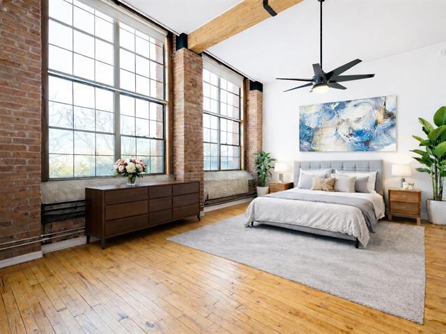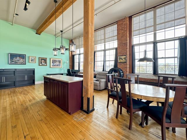 Loft industriel d'exception de 1 168 pi² situé dans une ancienne usine convertie. Plafonds élevés, fenestration spectaculaire pleine hauteur, murs de briques apparentes, poutres de bois et vastes aires ouvertes baignées de lumière. Cuisine avec îlot central, espace de vie impressionnant et cachet authentique impossible à recréer. Chauffage inclus, piscine chauffée, concierge, rangement et stationnement. Un produit rare alliant caractère, superficie et commodités modernes. Emplacement idéal, près de tous les services. (49438549)