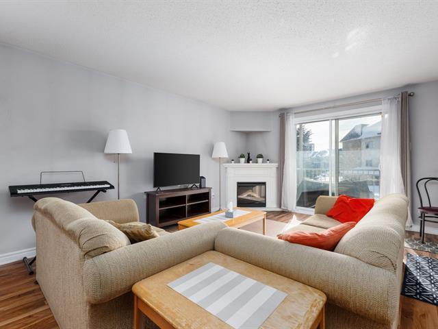 Spacieux condo de 2 chambres situé au 2e étage dans le secteur recherché du Plateau. Unité de coin lumineuse avec fenêtres latérales et balcon ouest 8'x5' offrant de magnifiques couchers de soleil. Aire ouverte avec porte-patio et foyer électrique, salle à manger avec grande fenêtre 52"x44". Cuisine avec armoires foncées et double évier. Plancher flottant partout. Grande salle de bain avec douche séparée et bain. Walk-in à la chambre principale, rangement intérieur et stationnement inclus. (38703304)