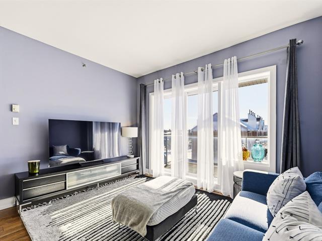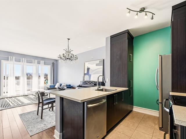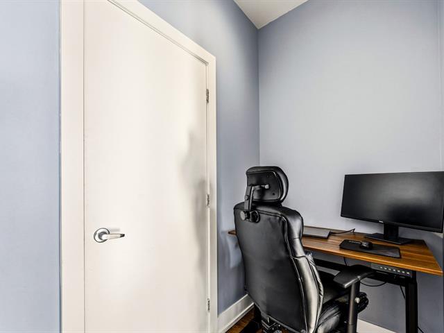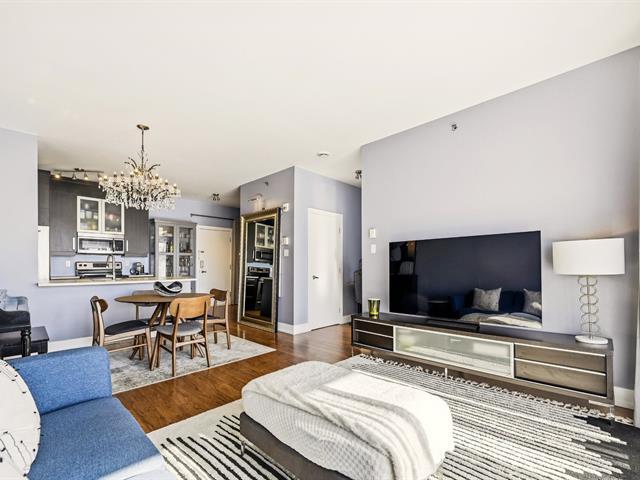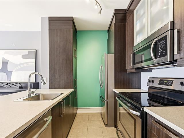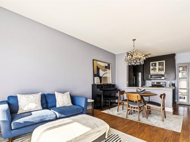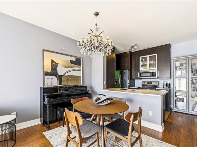 Condo impeccablement entretenu, offrant un concept à aire ouverte pour le salon, la salle à manger et la cuisine. Plafonds d'une hauteur rare de 9 pieds sur le marché. Grand balcon, vaste fenestration et orientation du condo du côté ensoleillé de l'immeuble. Spacieuse chambre à coucher. Espace pouvant servir de bureau à domicile. Électroménagers inclus. Garage et rangement. Immeuble avec ascenseur, piscine extérieure et terrasse. (39262150)