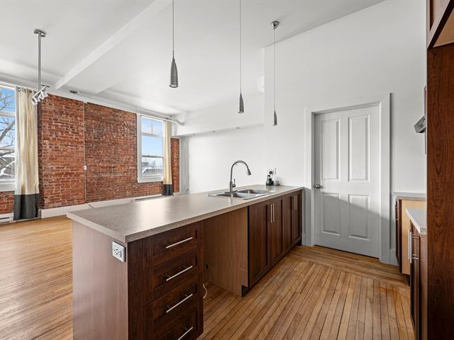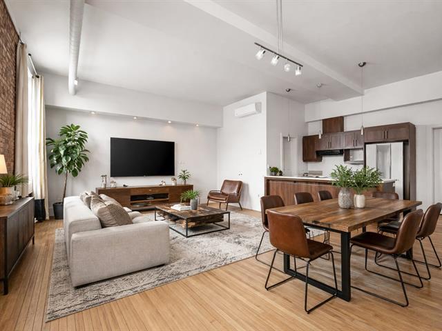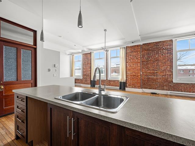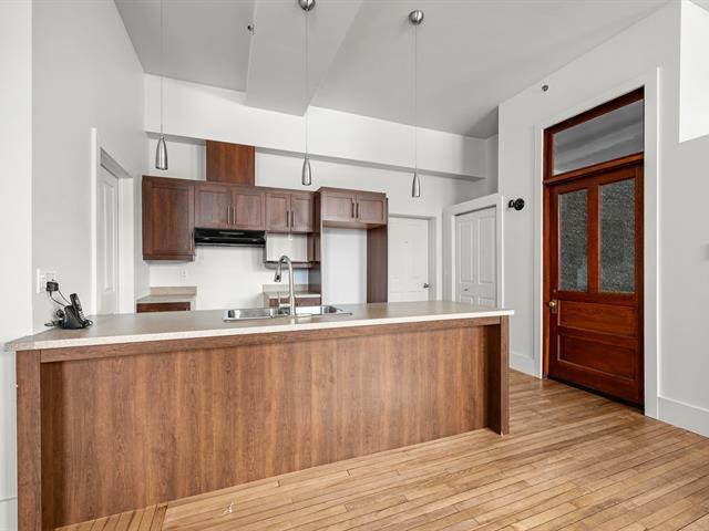 Loft lumineux au cachet unique avec plafonds de 10,9 pieds et grandes fenêtres offrant une vue dégagée et un ensoleillement optimal. Concept ouvert réunissant cuisine avec comptoir-lunch, salle à manger et salon convivial. Chambre de style loft avec grand garde-robe. Salle de bain avec douche indépendante et bain podium. Espace laveuse-sécheuse et rangement pratique. Stationnement #56 inclus et accès à la terrasse sur le toit. Au coeur du centre-ville. Frais de copropriété 188$/mois. (51750360)