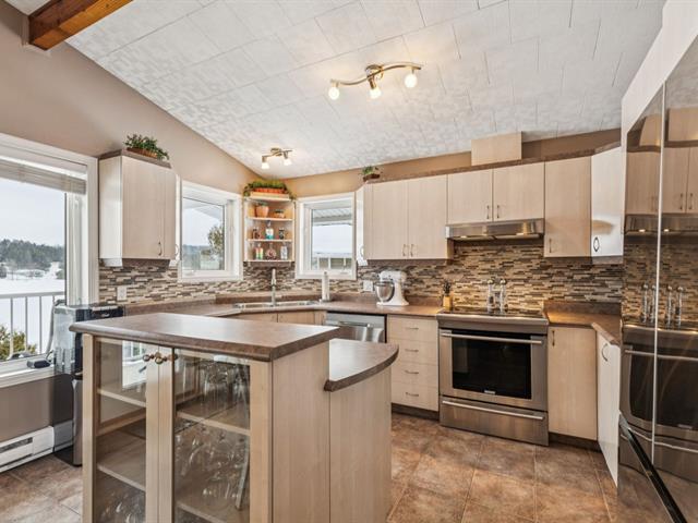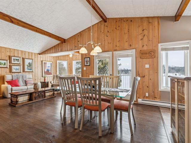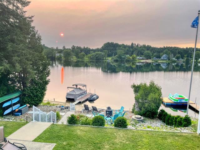 BORD DE LAC NAVIGABLE! Ce refuge raffiné 4 saisons offre le vrai style de vie au bord de l'eau: espace, vues à couper le souffle & confort à l'année. L'aire de vie principale à aire ouverte propose un toit cathédrale & une fenestration généreuse mettant le lac en valeur, ainsi qu'un balcon face à l'eau pour en profiter pleinement. Le rez-de-jardin walk-out comprend une vaste salle familiale avec foyer au propane, un solarium lumineux & une terrasse asphaltée, parfaite pour relaxer ou recevoir. Offrant 3 chambres & un garage double détaché pour les véhicules & rangement. À quelques min des services, cette propriété allie confort & commodités! (46961603)
