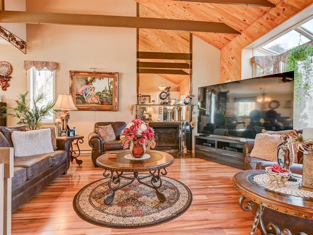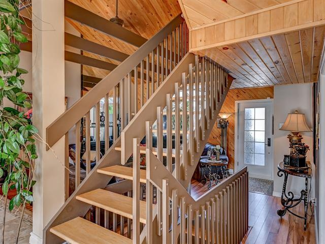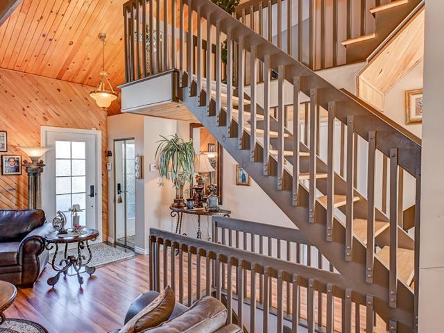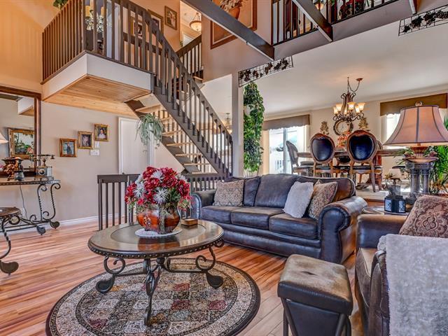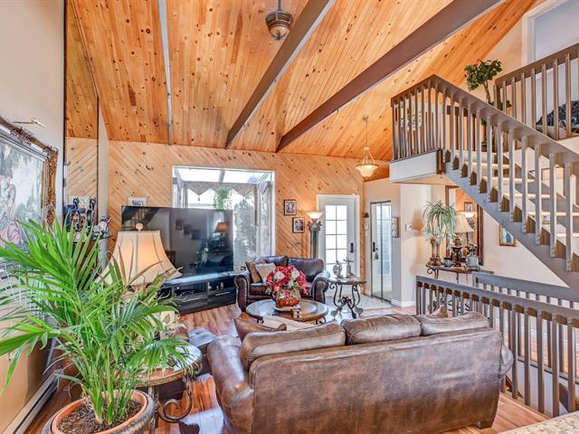 SOUS L'ÉVALUATION MUNICIPALE! Maison à paliers multiples sur trois niveaux offrant poutres apparentes, plafond cathédrale au salon et superbe luminosité. Aires ouvertes réunissant salon, salle à manger et cuisine, avec salle d'eau. Chambre au premier palier, chambre principale avec bain privée et salle de bain complète ainsi qu'un grand walk-in complète le 2e paliers. Le sous-sol offre deux chambres supplémentaires. Cour intime plein sud avec haies matures, piscine hors terre, terrasse avec gazebo, garage attaché et allée asphaltée pour deux voitures. Située dans un quartier résidentiel paisible et recherché. OPPORTUNITÉ! FAITES VITE! (51864386)