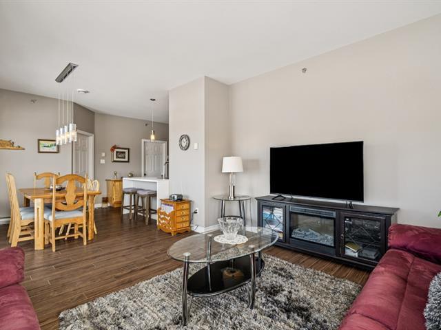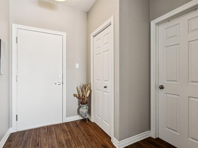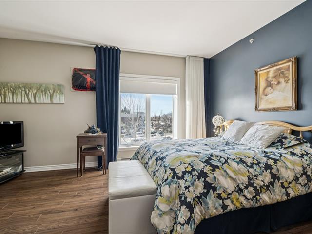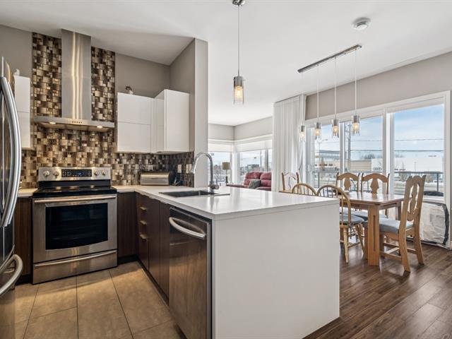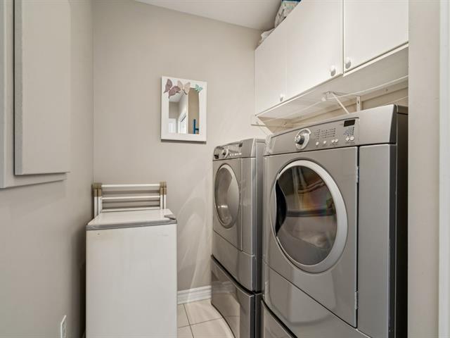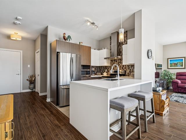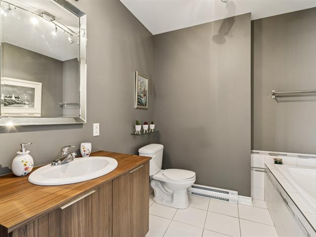 ** UNITÉ DE COIN AVEC 2 ESPACES GARAGE ** Immeuble avec ascenseur, piscine extérieure et terrasse sur le toit. Unité de coin baignée de lumière naturelle, située au 2e étage, plafonds 9'. Offre salon, salle à manger et cuisine à aire ouverte. Comptoir-lunch à la cuisine, armoires 2 tons, porte-patio vers le balcon à la salle à manger, salon avec grandes fenêtres en coin. Offre 2 chambres, grande chambre principale avec walk-in, salle de bain avec douche indépendante et bain + salle de lavage séparée. Rangement intérieur au niveau garage. Suite Addenda ! (43073035)