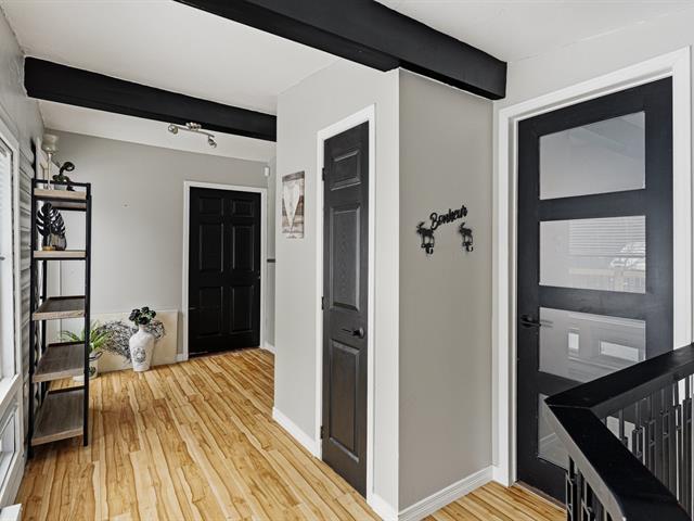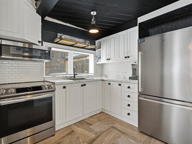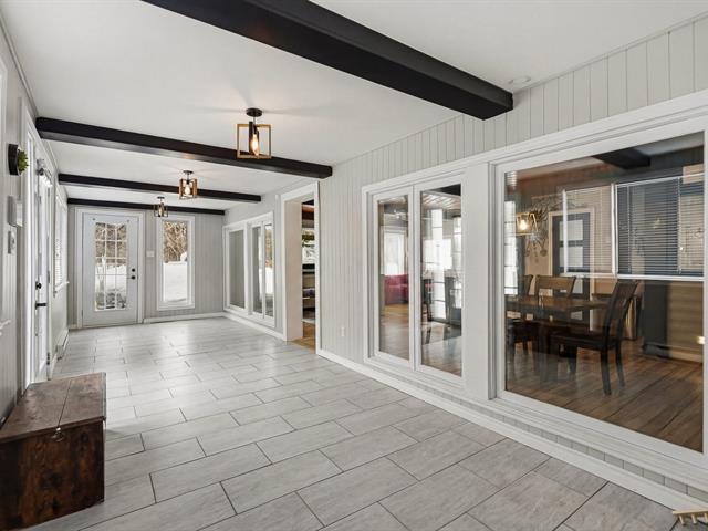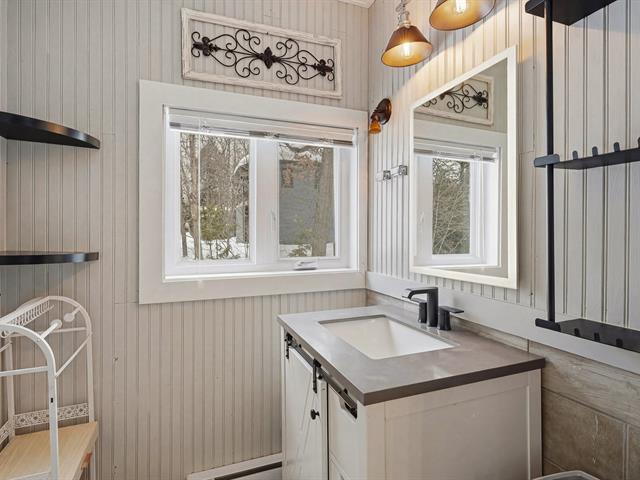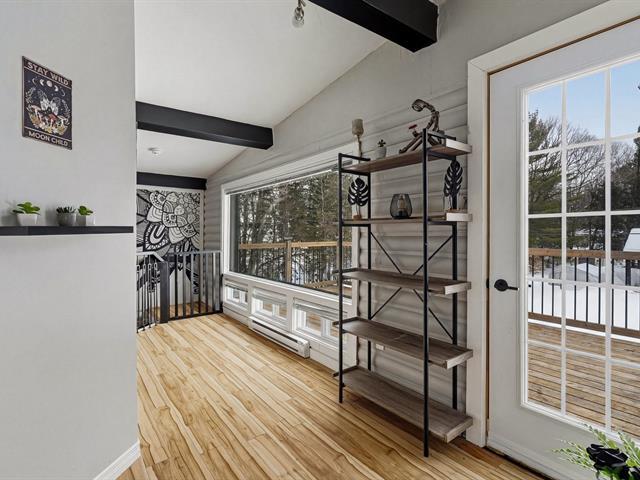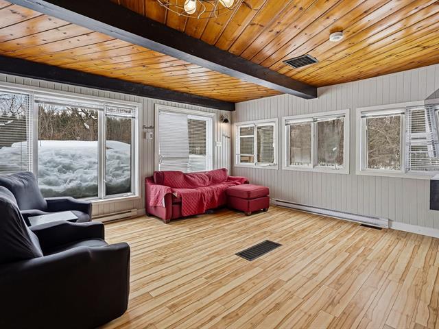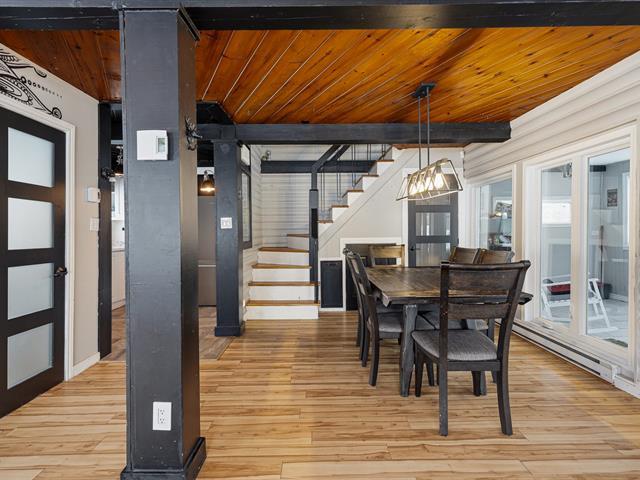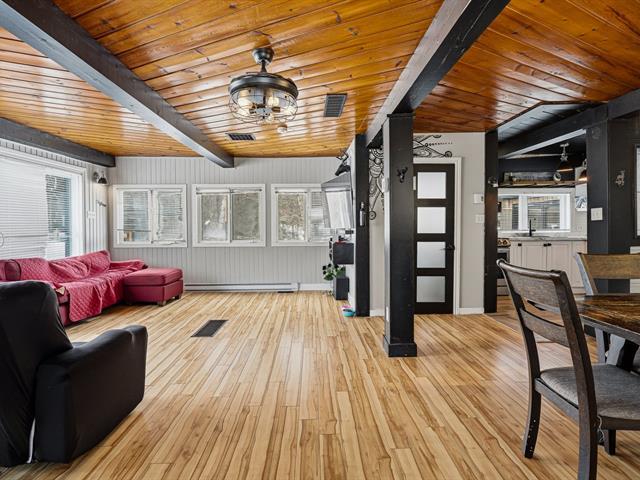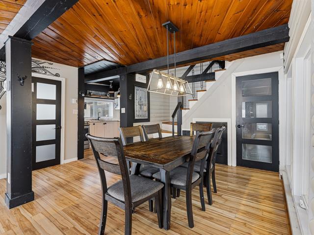 Chaleureuse maison située dans une rue sans issue paisible, parfaite pour une vie tranquille. L'aire ouverte réunit cuisine, salon et salle à manger sous un plafond et des poutres en bois, créant une ambiance conviviale. Véranda lumineuse avec accès au balcon. Deux chambres et salle de bains à l'étage. Sous-sol avec grande salle familiale et poêle au bois. Terrain plat et ensoleillé de 20 000 pi² avec accès au lac (non navigable), garage isolé et remise. Un vrai petit coin de paradis. (56017313)