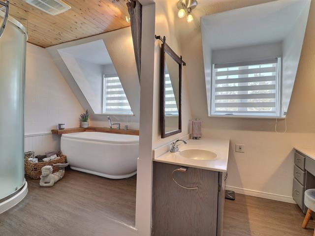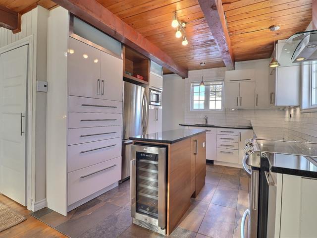 Magnifique propriété de style canadien offrant un cachet exceptionnel et de belles rénovations récentes. Configuration bigénérationnelle côte à côte ou opportunité de revenu supplémentaire grâce au logement 3½ sur 2 niveaux. L'unité principale séduit par ses plafonds lattés de bois avec poutres, ses planchers de bois et son foyer électrique au salon. Elle propose 3 chambres, ainsi qu'un SS aménagé avec salle familiale et espace de rangement. Située près des services et des écoles, la propriété offre une belle cour intime avec haie, arbres matures, terrasse et piscine. Une propriété unique, polyvalente et pleine de charme. Faites vite!!! (54621492)