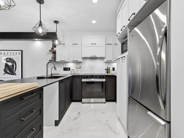 Idéal pour ceux qui souhaitent éviter les escaliers ou pour les propriétaires de chien. Ce condo offre une luminosité surprenante, une aire ouverte conviviale, 2 chambres de bonnes dimensions et des pièces très bien divisées. Salle de bain refaite, planchers en époxy chauffants, comptoirs de cuisine en Dekton, un matériau haut de gamme reconnu pour sa grande résistance aux rayures, aux taches et à la chaleur, en plus d'être non poreux et facile d'entretien, idéal pour un usage quotidien. Balcon intime facile d'entretien et 2 stationnements. Secteur calme, voisinage accueillant, près des services. Occupation flexible. (45042614)