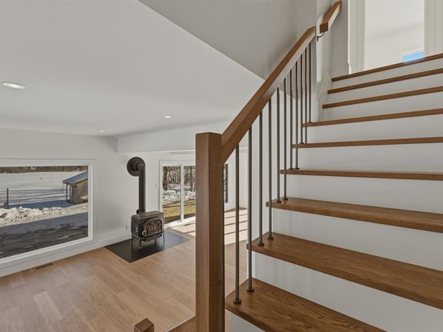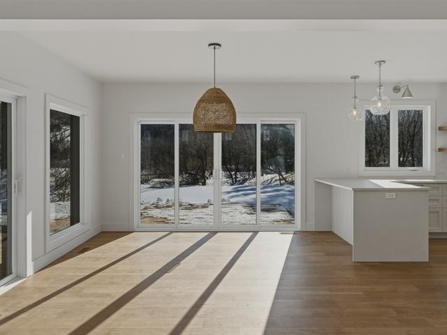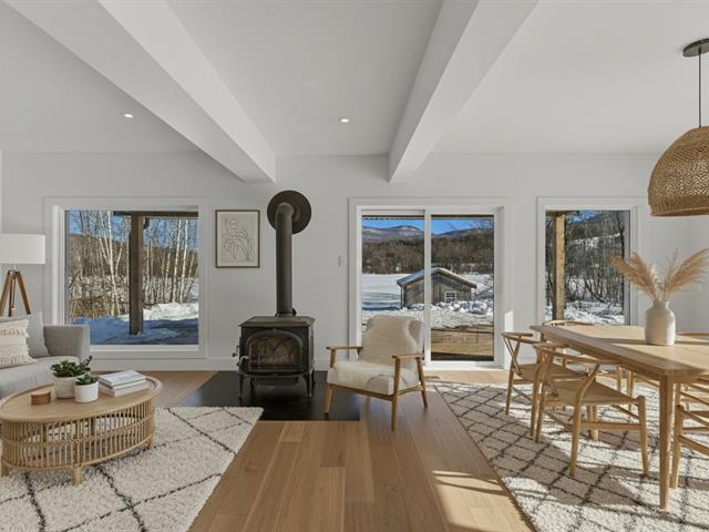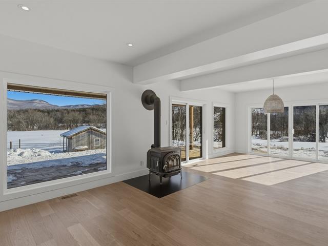 Entièrement rénovée en 2025, cette maison séduit par sa luminosité, sa vue dégagée sur les montagnes et son atmosphère chaleureuse. La cuisine chic-farmhouse, avec évier à tablier et comptoirs de quartz donne le ton. Elle s'ouvre sur la salle à manger et le salon, une pièce baignée de lumière. Le poêle à bois et les planchers de chêne ajoutent au cachet enveloppant. La salle d'eau est pratique avec son espace buanderie . À l'étage, suite des maîtres avec penderie et luxueuse salle de bains attenante; plus deux chambres partageant une 2ème salle de bain complète avec plancher radiant. Terrain de 2,62 acres, ruisseau, la paix à la campagne! (56821936)
