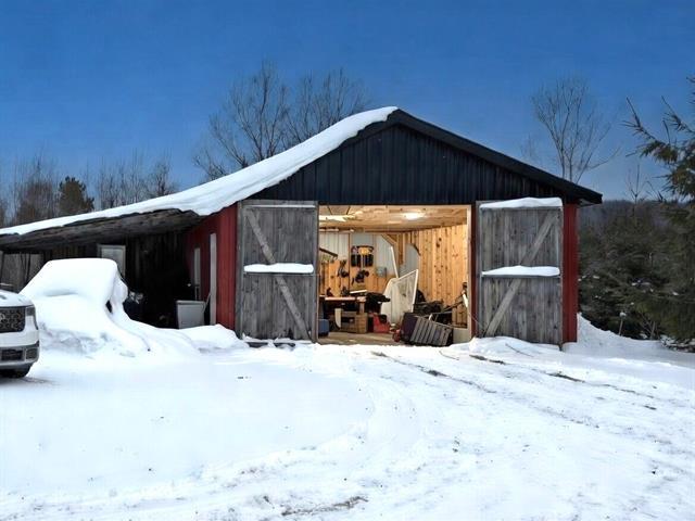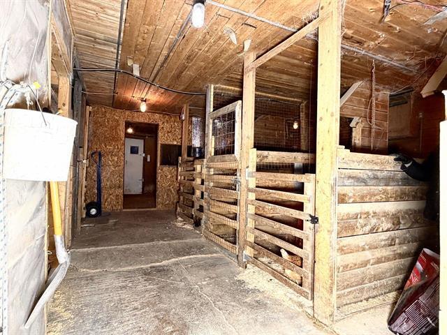 Charmante fermette de 2,5 acres située en pleine campagne, dans un secteur montagneux offrant tranquillité et espace. La propriété comprend une vaste écurie de 76 pi x 27 pi, aménagée pour accueillir jusqu'à cinq chevaux qui est une section isolée quatre saisons. Le terrain, soigneusement divisé, propose plusieurs enclos idéals pour vos animaux. Un lieu parfait pour les amoureux de la nature et de la vie équestre. (46935902)
