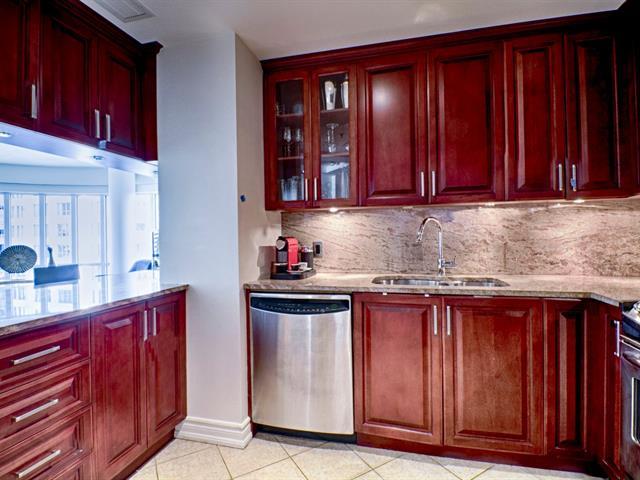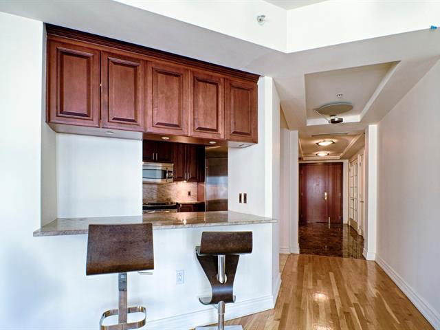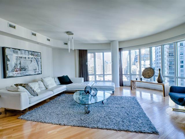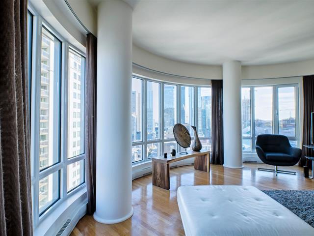 LE ROC FLEURI - Magnifique unité de deux chambres, deux salles de bain située dans le coin arrondi du bâtiment avec des fenêtres pleine hauteur inondant l'espace de lumière. Située dans un immeuble d'excellente réputation, le Roc Fleuri, et offre de nombreux services. Une place de stationnement intérieur et un espace de rangement sont également inclus. (52383109)