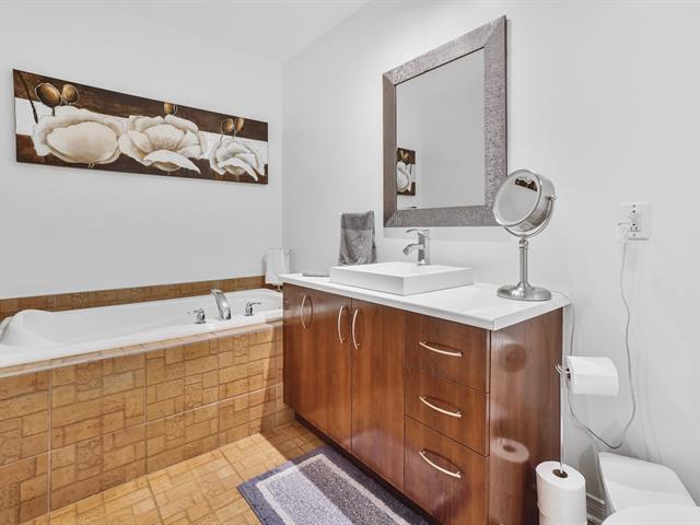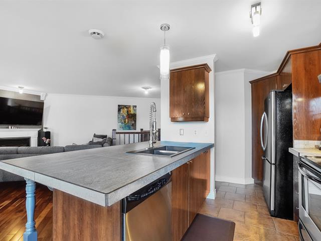 Rare condo sur 2 niveaux en unité de coin avec jardin à usage exclusif et 2 stationnements extérieurs, situé dans le Village Parisien. Offrant plus de 1 050 pi², cette unité lumineuse propose un espace de vie à aire ouverte regroupant salon et salle à manger, 2 chambres spacieuses, une salle de bain complète et une salle d'eau. Profitez d'une grande terrasse avec accès direct à votre jardin exclusif - un véritable espace extérieur de style maison de ville. Toiture remplacée en 2024. Copropriété bien entretenue avec frais de condo raisonnables. Proche du DIX30, de la station REM, des parcs et des écoles, accès rapide aux autorutex 10, 15 et 30 (54543867)