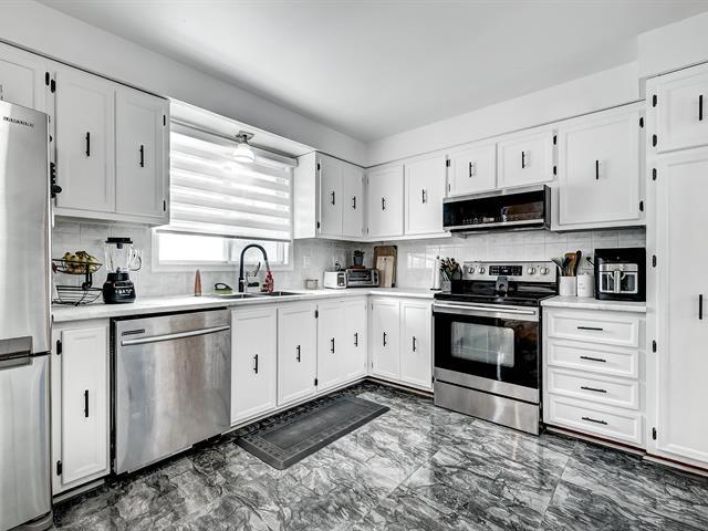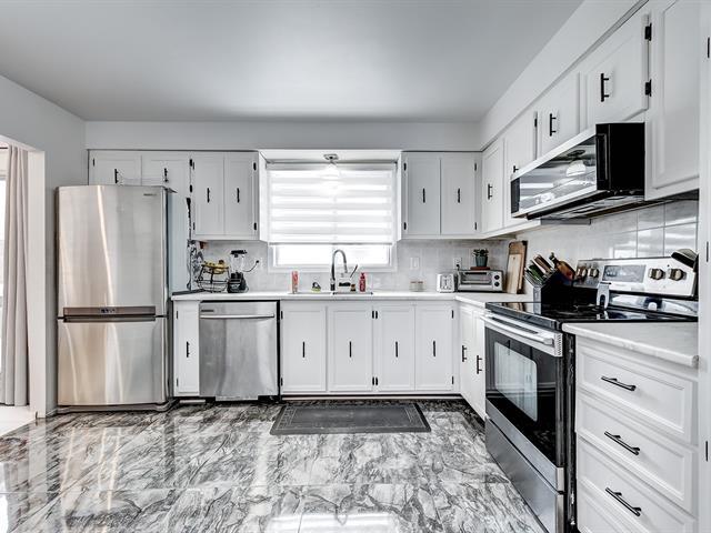 Charmante maison à paliers multiples, soigneusement améliorée avec de nouveaux planchers, cuisine rafraîchie, rampes modernes et nouvelle thermopompe, offrant un confort exceptionnel et un cadre de vie raffiné. L'espace de vie accueillant est baigné de lumière naturelle grâce à de grandes fenêtres et un puits de lumière. La cuisine élégante se distingue par ses armoires sur mesure. 3 chambres de bonnes dimensions, salle familiale agrémentées d'un foyer au bois, idéale pour la détente. Garage double, allée pour 4 voitures, grande cour offrant une vue paisible sans voisin à l'arrière. À proximité du parc Audubon, écoles et tous les services. (55625783)