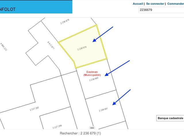 Découvrez ces trois lots à Eastman totalisant environ 31 000 pieds carrés. Ces lots, adjacents l'un à l'autre, sont idéaux pour un investissement. La rue devra être aménagée aux frais des utilisateurs, selon les normes en vigueur de la municipalité. Veuillez vous informer auprès de celle-ci pour plus de détails. Le terrain est accessible seulement en raquettes cet hiver. TPS/TVQ doivent être ajoutées au prix demandé (56489796)